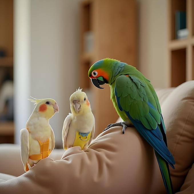 - 🦜3. The parrot clothing and flying suit are made from high-quality, durable materials that can withstand the activities of your active bird. The bird diapers are super absorbent, ensuring that your pet stays clean and dry.