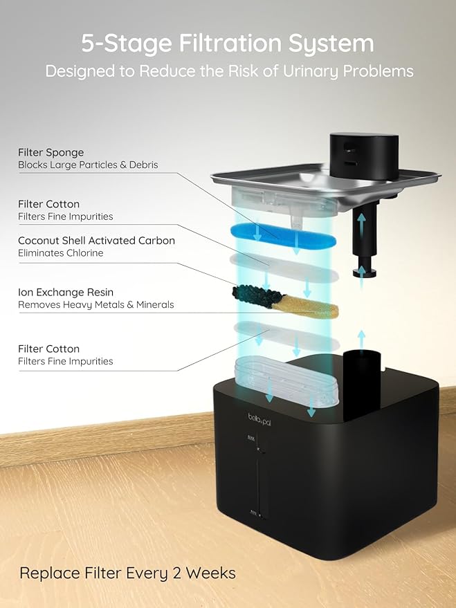 - 【5-Stage Filtration System & Filter Reminder】- Fresh, flowing water no cat can resist! Our advanced filtration delivering fresh, clean water your pets will love. For optimal performance and user experience, we recommend replacing the filter every two weeks. (Filters are model-specific. If a replacement is needed, please purchase the filter set from other variants available at this link.)