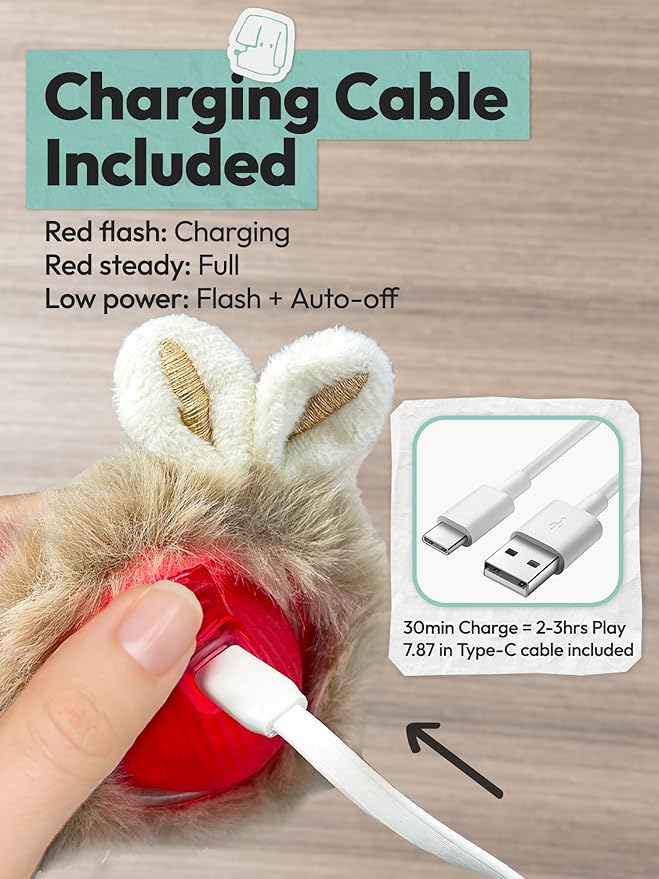 - USB Fast Charging for Convenience: Equipped with a 20 cm USB charging cable, this cat cage offers quick charging—just 30 minutes of charging provides 2-3 hours of playtime. The fast charging feature allows you to quickly recharge the interactive ball, so your cat can enjoy continuous entertainment without long wait times.