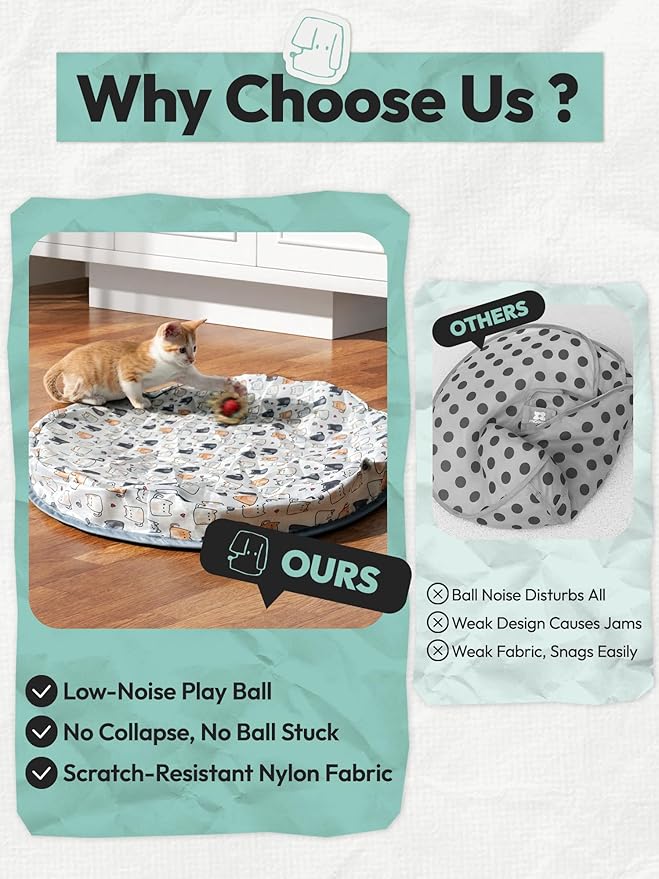 - Satisfies Natural Hunting Instincts: Inspired by the cat's natural hunting behavior, the interactive ball mimics the movements of prey, encouraging cats to chase, pounce, and play. This satisfies both their exercise and psychological needs, preventing destructive behaviors caused by lack of activity and helping to keep them fit and happy.