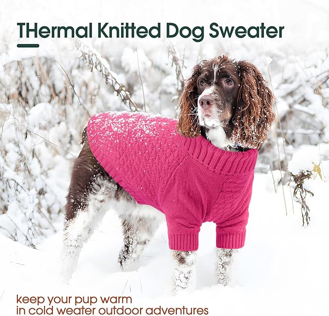 Kuoser Dog Sweaters for Medium Dogs Girl Boy, Solid Turtleneck Pullover Dog Sweater for Christams Holiday, Thick Warm Winter Fall Knitwear Half Sleeve Pet Sweater Outfit, Rose M