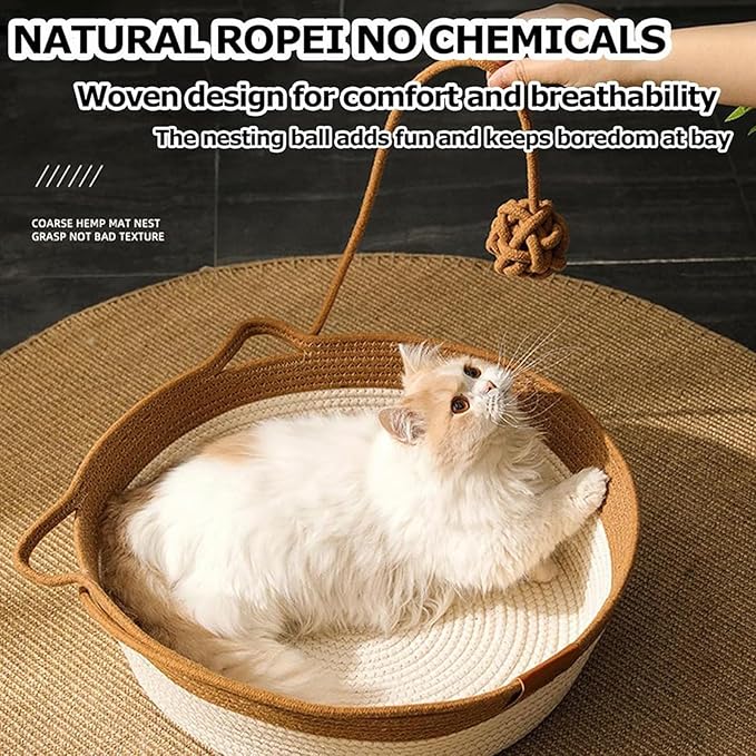 - Natural & Safe Materials】 Instinct Basket handcrafted from 100% natural cotton rope, this cat basket offers a skin-friendly and safe resting space that cats instinctively trust. The woven texture naturally encourages nesting behavior, keeping your feline cozy and relaxed year-round