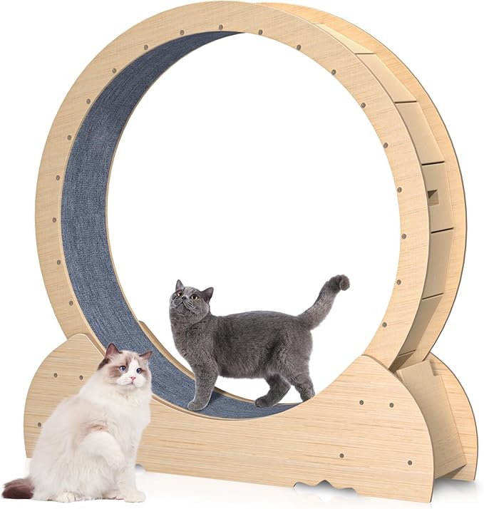 - 【Easy Assembly & Home Ready】Ready for fun in minutes! This cat exercise wheel features precisely engineered parts for simple tool-free assembly. Its attractive wooden design complements any room while providing endless entertainment.